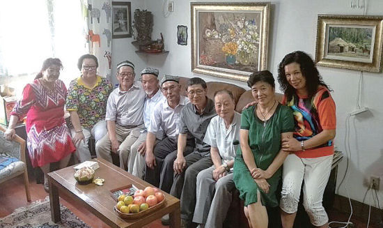 來到當年絲綢廠副廠長馬哈木提·斯迪克的家中,白發蒼蒼的主人在家中的葡萄架下擺下了切好的西瓜,拿出一本舊相冊老淚縱橫:“你看,這是我當時從浙江、江蘇帶回來的紡織女工,這些都是鮮花一般的姑娘啊,你說我馬哈木提是不是最幸福的人。可是,這些鮮花般的姑娘都走了啊。有的人都去世了,只要我活著就會不停地想念她們。”