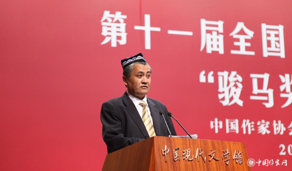 長篇小說獎獲獎代表阿拉提·阿斯木(維吾爾族)發表獲獎感言