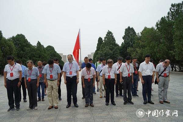 采訪團(tuán)來到塔山烈士陵園,并向烈士默哀 攝影:樊金鳳