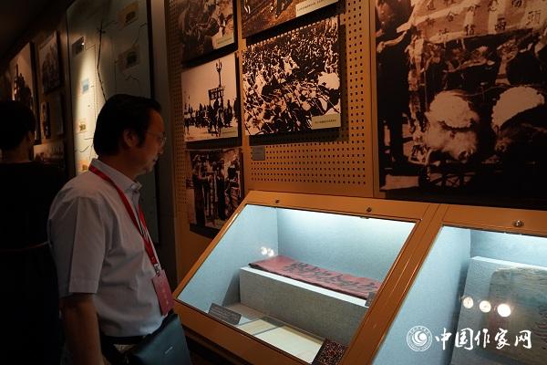 9日上午,采訪團(tuán)來到遼沈戰(zhàn)役紀(jì)念館,紀(jì)念館由朱德元帥親筆題寫?zhàn)^名。從戰(zhàn)史館、支前館、英烈館到全景畫館,一張張黑白照片、一件件歷史文物將每個(gè)人拉回到那段艱難的革命歷史歲月。紀(jì)念館中,一個(gè)被保存著的枯樹引起了大家的注意。這棵樹曾為戰(zhàn)士擋住許多槍炮,被命名為“英雄樹”。英雄樹的表面仍殘留著許多槍眼和彈孔,團(tuán)員們站在英雄樹前,心情久久不能平靜。團(tuán)員陳亮感慨地說:“這棵樹曾被槍炮打過,雖有些干枯,卻始終沒有腐朽,它讓我們敬畏?!焙髞?,陳亮還為英雄樹作了一首詩。他說,看到實(shí)物實(shí)景,內(nèi)心常常受到觸動(dòng),創(chuàng)作的靈感也會(huì)瞬間迸發(fā)。寫作就是為了不遺忘。團(tuán)員裔兆宏有同樣的感受,他說,參觀革命根據(jù)地現(xiàn)場遺址,對(duì)于摒棄歷史虛無主義,真實(shí)再現(xiàn)革命歷史,創(chuàng)作出有歷史感、有情懷、有溫度的作品具有重要的意義。