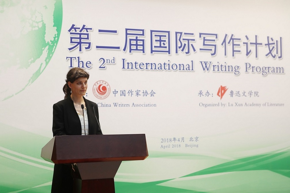 斯洛文尼亞詩(shī)人芭芭拉·保加可尼克在魯迅文學(xué)院第二屆國(guó)際寫作交流計(jì)劃開幕式上致辭