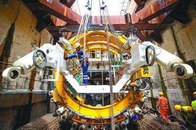 在以色列特拉維夫輕軌紅線施工現場,工人在組裝盾構機。中國中鐵旗下子公司與以色列公司組成的聯營體于2015年5月成功中標以色列特拉維夫輕軌紅線項目TBM段西標段。圖為新華社發