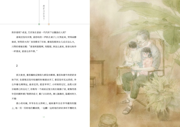 本書透過姐姐姜思和弟弟姜年的孩童視角,不僅為讀者展現了顏料制作、補畫、刺繡、年畫等傳統手工藝,也勾勒出了顏料坊思年堂在現代化進程中的載沉載浮。此間的少年也慢慢長大,找到了適合自己的生命色彩。