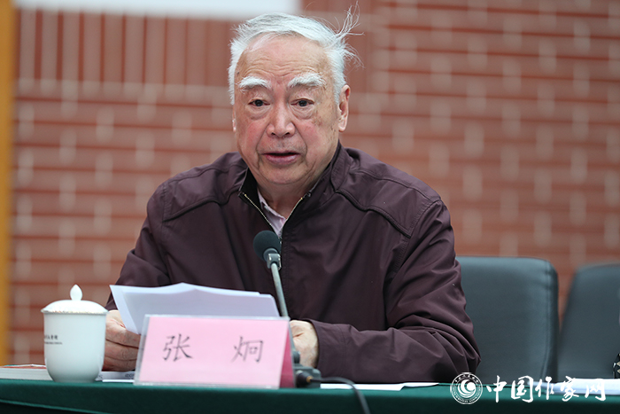 中國作協名譽副主席張炯在會上發言