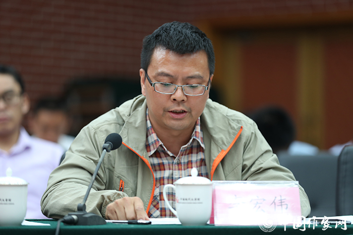 中國作協青年干部代表李宏偉在會上發言