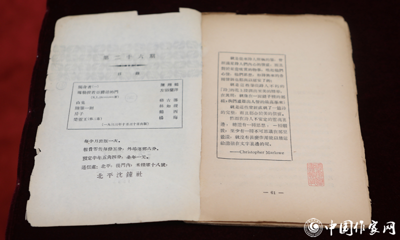在《沉鐘》雜志第二十六期卷首,引用了16世紀(jì)的英國詩人、劇作家克里斯托弗?馬洛(Christopher marlowe)的話——