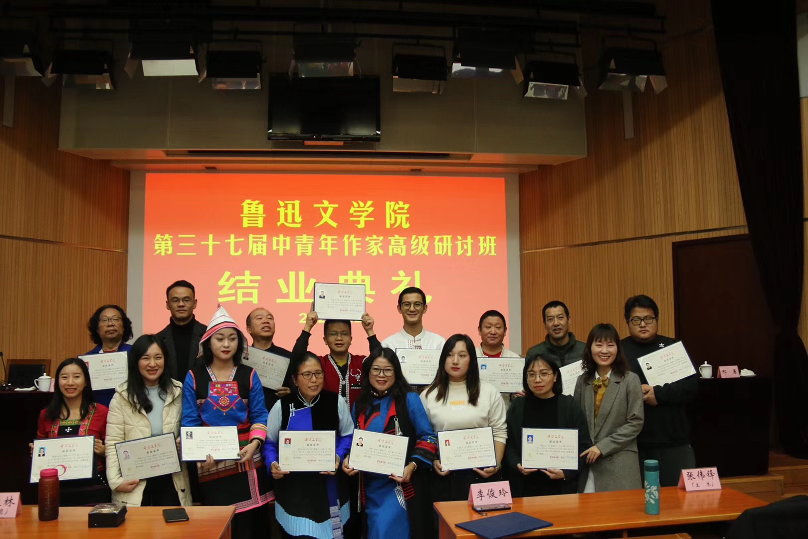 無論是文化背景、生活習慣還是年齡、創作實力,同學之間有著很大差異,年齡跨度甚至達到40歲,一起學習、生活難免會起一些爭執和摩擦,如何凝聚人心,讓大家安心度過四個月的學習生活是班級黨支部書記、土家族作家劉少一除了創作之外需要操心的事。在他眼里,這個班級就像一個大家庭,大家能歌善舞,很有集體榮譽感,雖然偶爾會有小摩擦,但遇到事情就會擰成一股繩。在慶祝新中國成立70周年之際,魯37的同學與老師們在中國作協機關黨委主辦的慶祝活動上聯袂演出,僅用兩天的時間就排練出榮獲特等獎的節目。班里的門巴族作家多布杰突發急病,魯院的領導和老師們第一時間把他送到醫院搶救,給予了無微不至的關心和幫助;很多同學捐款出力,班委還自愿接受排班,照顧多布杰。這些點滴都在不斷匯聚力量,將原本來自祖國大江南北、互不相識的同學緊緊聯系在一起。