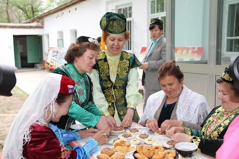 棗紅色卷發、高鼻深目、皮膚白皙,來自塔塔爾族的再屯娜?卡里穆瓦愛笑,嘴角總是向上的弧度。她拉得一手好手風琴,是班級的文藝骨干,大家都親昵地稱她為“大班花”、“大美女”。文學本不是她最擅長的事情,作為塔城地區塔塔爾族文化協會的會長,也是新疆塔城地區塔塔爾族糕點的代表性傳承人,她更多的是從事文化傳承與保護工作。