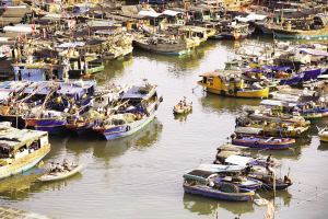 停泊在三亞漁港的疍家漁船(2010年攝)。