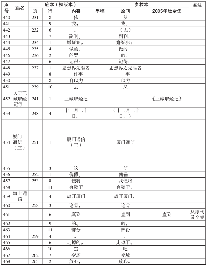 [vii]受限于客觀條件,《空談》(初刊1926年4月10日《國民新報副刊》)與《廈門通信》(初刊《波艇》月刊第一號,1926年12月出版)兩文此次未能見到原刊。附表中關于《空談》的校勘參考了孫用《魯迅全集校讀記》(湖南人民出版社1982年版)。