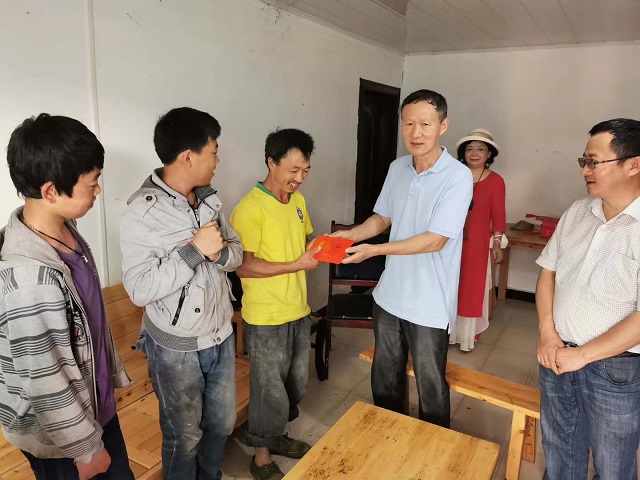 “苗家山寨、扶貧情深”,在重慶市人民檢察院籌資幫扶的便民服務(wù)中心里,王明凱、劉建春為大山里的孩子們送上了《春風(fēng),拽著人們奔跑》等作家們自己寫的書,并勉勵他們“好好學(xué)習(xí)、天天向上,努力成為國家的棟梁!”。在脫貧戶何祖華家中,劉建春代表大家送上慰問金,南風(fēng)愛心助學(xué)會會長糜建國當(dāng)即表示關(guān)注關(guān)心他的三個孩子。
