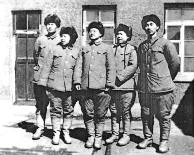 1952年3月11日部分赴朝創(chuàng)作組成員在沈陽東北軍區(qū)招待所門前合影。左起:李蕤、逯斐、巴金、菡子、黃谷柳。