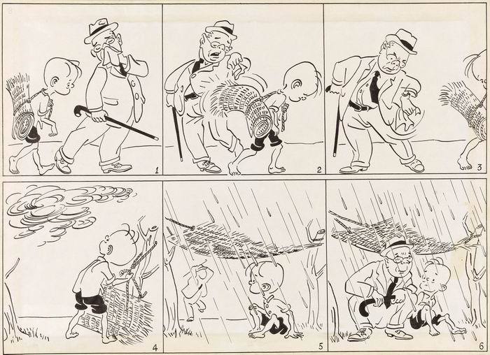兒童文學作家陳伯吹和我父親關系要好,他受《大公報》的委托希望我父親為《大公報》也畫一套三毛,我父親說正好在構思,并給出了一個《三毛流浪記》的提綱。陳伯吹表示,你畫了,《大公報》就發。