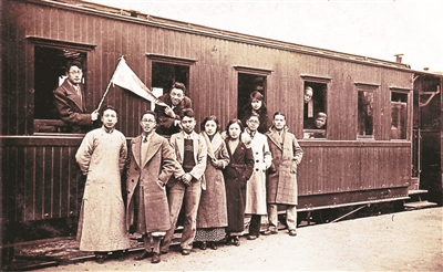 歷史系同學(xué)去山西參觀途中,左一為夏鼐,右四為郭秀瑩,右三為許亞芬