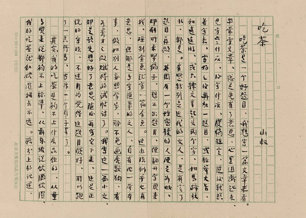 從嘉德公布的手稿目錄來看,這批手稿中有近十件都是談論吃食,筆力所及之處不光是故鄉(xiāng)的美食,還談及日本美食,周作人寫在北京一直連續(xù)住了四十多年“時常還記憶起故鄉(xiāng)的吃食來,覺得不能忘記”。在《閑話毛筍》中,他寫因為有“肥甘”,而中了“思鄉(xiāng)的盅惑”,“主要是食品里的筍,其次是煮熟的四角大菱,果子里的楊梅?!薄蛾憡W地方的粗點心》從日本的菓子談起,談日本寺廟的風土人情和有趣的見聞,最后落筆在“我在茫然的望著給風吹起聚集攏來的落葉,心里卻在想著專稱寺起原的悲哀的故事”。《吃茶》中,周作人則一一例舉自己喜歡的茶,除常飲的龍井外,碧羅春、六安茶、太平猴魁偶有嘗鮮,又對苦丁茶與香片一一品評。