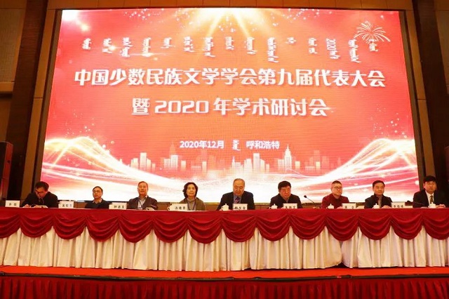 2020年12月12日至14日,中國少數民族文學學會第九屆代表大會暨2020年學術研討會在呼和浩特市開幕。此次年會由中國少數民族文學學會、內蒙古大學主辦,內蒙古大學文學與新聞傳播學院承辦。會議為期3天,來自全國30個省、自治區和直轄市的約240名學者線上線下齊聚一堂,就史詩學與口頭傳統研究、中國古代少數民族文學研究、跨學科與民間文學研究、中國現當代少數民族文學研究等議題展開討論。