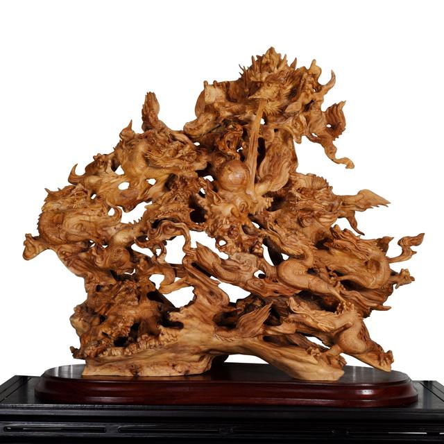 郭丙州藏品之九龍戲珠 老山檀香 70cmx33cmx62cm 作者徐國(guó)華 劉麗 攝