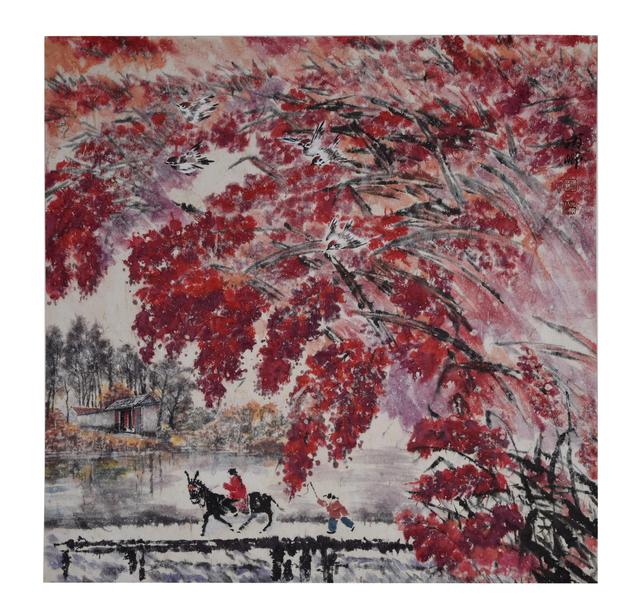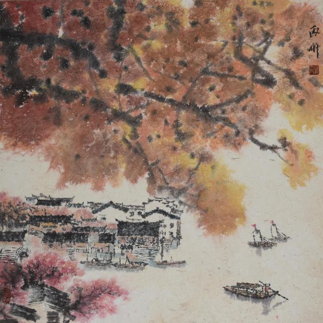 郭丙州中國(guó)畫參展作品《徽鄉(xiāng)秋雨》 96cmx96cm