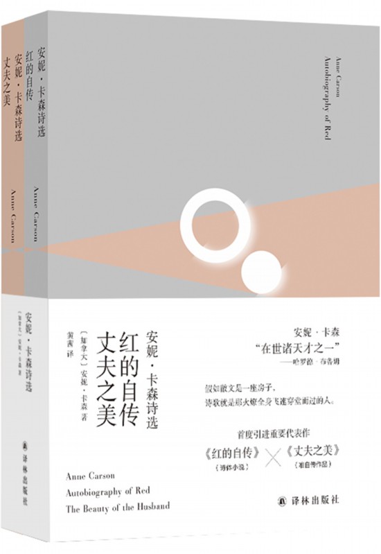 譯林出版社這次推出的兩部詩(shī)作《紅的自傳》《丈夫之美》,均代表了安妮·卡森的最高文學(xué)成就,且?guī)в袀饔浬省F渲?,《紅的自傳》取材于希臘神話,猶如一幅深刻感人的肖像,講述了一位藝術(shù)家如何坦然面對(duì)自己異于常人的身份?!墩煞蛑馈穭t記錄了卡森第一段失敗婚姻。作品兼有人物與情節(jié)、神話與魔法;詩(shī)中既具態(tài)度、才思,又暗藏悲傷。