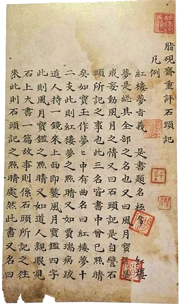 去年(1927)我從海外歸來(lái),便接著一封信,說(shuō)有一部抄本《脂硯齋重評(píng)石頭記》愿讓給我。我以為“重評(píng)”的《石頭記》大概是沒(méi)有價(jià)值的,所以當(dāng)時(shí)竟沒(méi)有回信。不久新月書店的廣告出來(lái)了,藏書的人把此書送到店里來(lái),轉(zhuǎn)交給我看。我看了一遍,深信此本是海內(nèi)最古的《石頭記》抄本,遂出重價(jià)把此書買了。