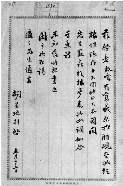 茲啟者:敝處有舊藏原抄《脂硯齋批紅樓》,惟祇存十六回,計(jì)四大本。因聞先生最喜《紅樓夢(mèng)》,為此函詢,如合尊意,祈示知,當(dāng)將原書送閱。手此。即請(qǐng)