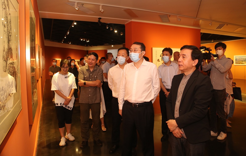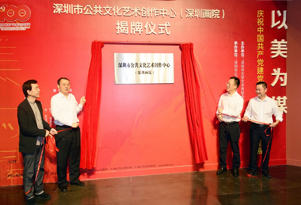 8月27日,筆架山北,銀湖水畔,滿山翠微掩映下的金湖一街36號(hào)格外熱鬧。深圳市公共文化藝術(shù)創(chuàng)作中心(深圳畫院)揭牌儀式在深圳畫院美術(shù)館舉行,深圳市委常委、宣傳部部長(zhǎng)王強(qiáng),市委宣傳部常務(wù)副部長(zhǎng)陳金海,市文聯(lián)黨組書記、主席梁宇,市委黨史學(xué)習(xí)教育第五巡回指導(dǎo)組組長(zhǎng)楊威共同為中心揭牌,并參觀了“以美為媒——慶祝中國(guó)共產(chǎn)黨建黨100周年藝術(shù)作品展”。
