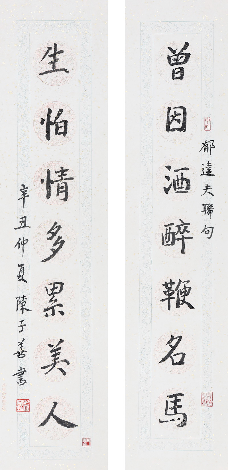 他帶給我們的最新驚喜,是這個世界上竟然會有一個“陳子善教授手錄新文學經典墨跡展”。但這次的驚喜又和以往有所不同,它以“出圈的節奏”挑戰了我對陳老師才能的想象力。陳老師怕我驚喜得找不著方向,就在微信里介紹說:“我這墨跡展,字不怎么樣,但自以為獨創一格的,是我只寫新文學名家的名言雋語,計有魯迅、胡適、周作人、郁達夫、徐志摩、梁實秋、林語堂、巴金、豐子愷、傅雷、張愛玲、木心等十二家的詩、對聯和警句。這是從未有過的,而且這些人也都是我研究過的……”我不禁揣想:陳老師對現代文學中這些人物星辰的感情究竟有多深不可測呢?他為這些人和書和文章以及與之有關的人和書和文章,獻了白天獻夜晚,獻了朝陽獻夕陽,獻了簡體獻繁體,獻了工作獻退休。現在,又把墨跡獻出來了。