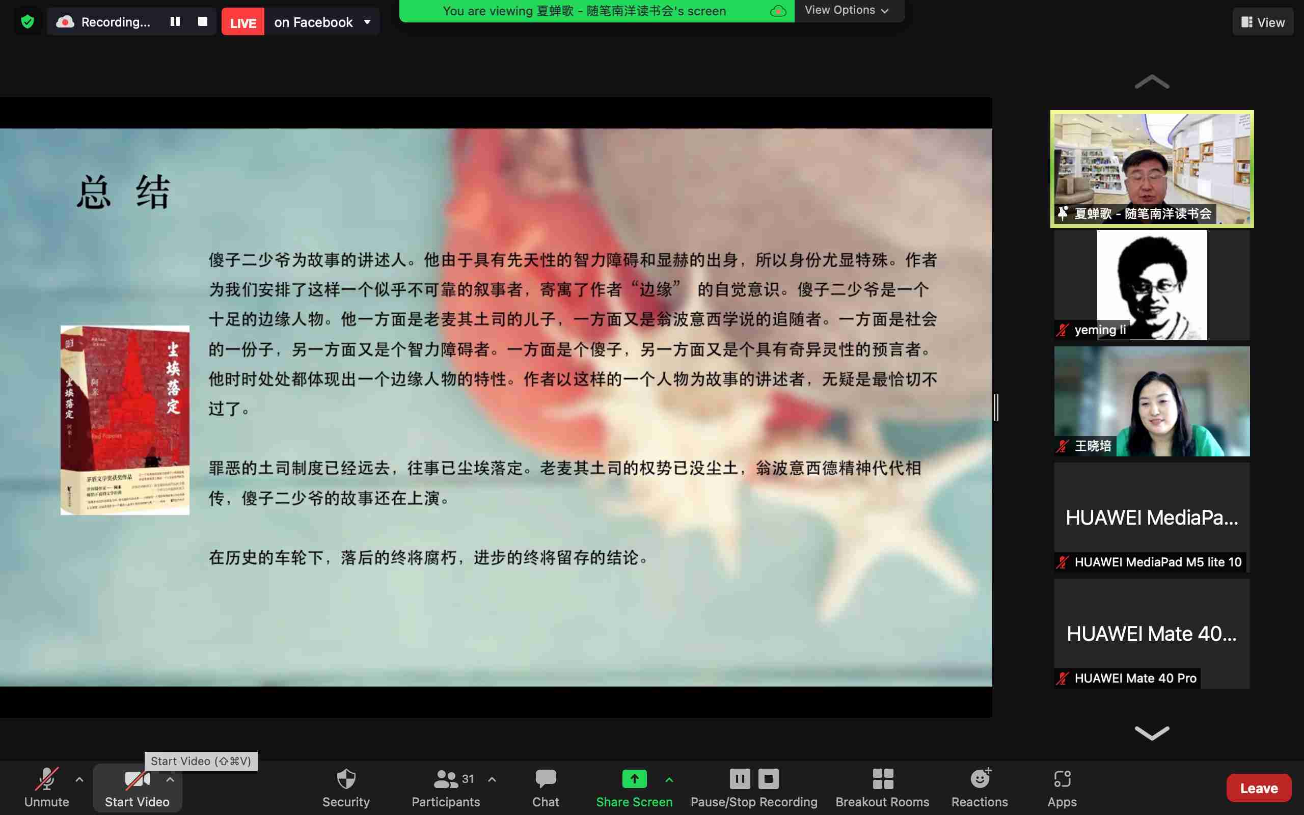 11月28日,新加坡中國文學讀者俱樂部組織讀者以在線形式閱讀了中國藏族作家阿來的長篇小說《塵埃落定》。《塵埃落定》曾獲得第五屆茅盾文學獎,并于2019年入選“中國70年70部長篇小說典藏”。