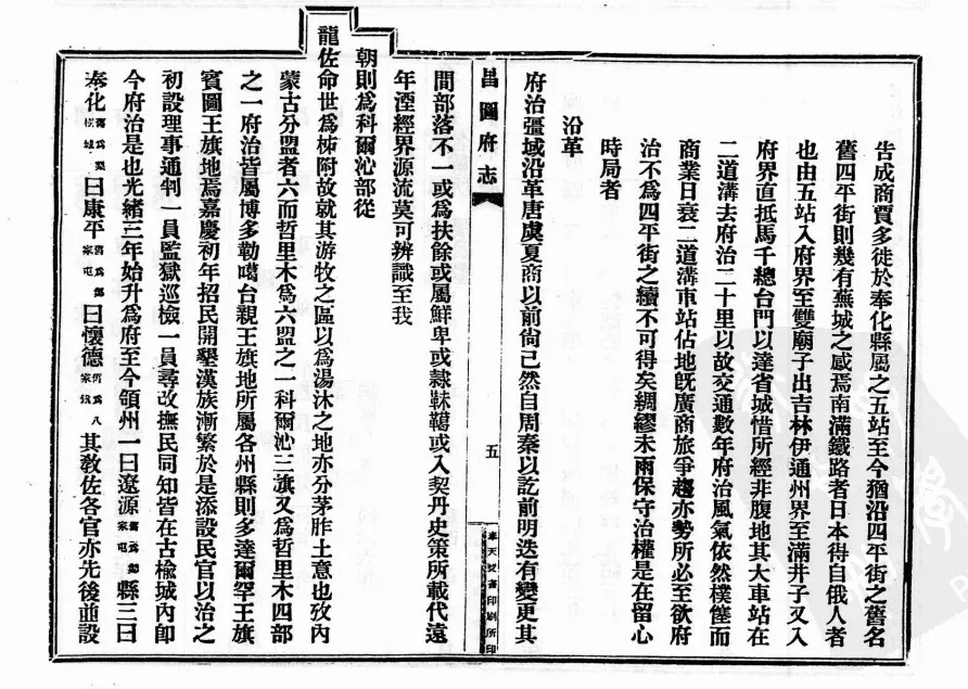 [56] 民初昌圖縣曾建立電力工廠,鋪設電話線,修筑馬車路等,但都無力逆轉當地經濟、交通凋敝之頹勢。民國《續修昌圖縣志》卷一《區域》,第五頁b。