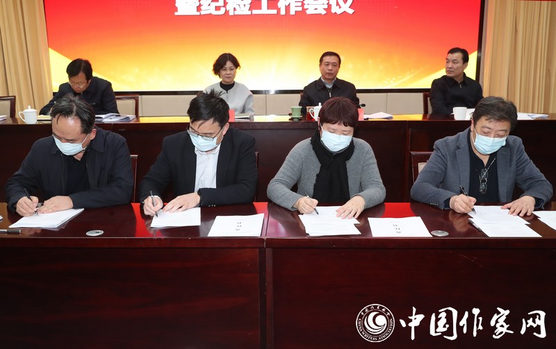 會上,中國作協黨組與各單位各部門主要負責同志簽訂了2022年全面從嚴治黨主體責任書。機關黨委、機關紀委報告了中國作協2021年黨的建設和紀檢工作情況,辦公廳黨支部和《詩刊》社黨支部做了經驗交流發言。