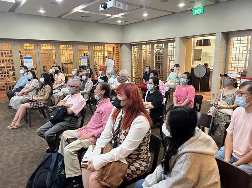 為擴大中國文學(xué)在大眾中的影響,此次活動特別安排在位于新加坡主流商業(yè)地段的“唐城圖書館”舉行。該圖書館由新加坡國立圖書館管理局管理,是新加坡第一家以華人文化為主題的圖書館。其3萬冊藏書中超過6成是華文書籍,是新加坡著名的“文化地標(biāo)”。盡管因疫情防控政策限制,現(xiàn)場只能有40位讀者就坐,但活動仍然吸引了一批慕名而來的普通讀者。他們紛紛向主辦方詢問購書途徑,并表示希望有機會參加更多俱樂部活動。
