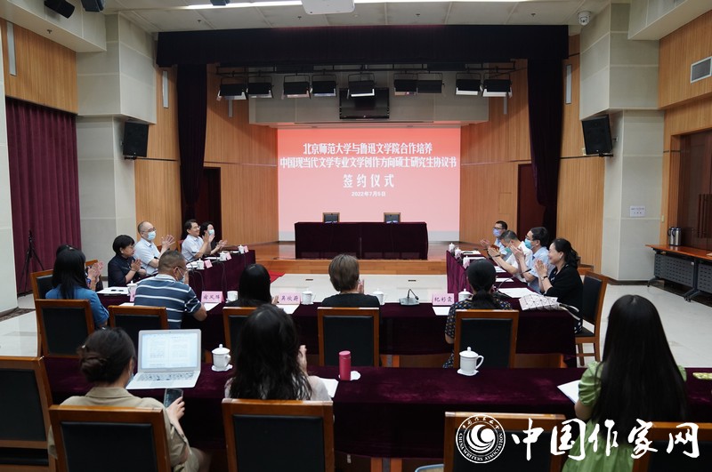 7月5日,北京師范大學與魯迅文學院合作培養中國現當代文學專業文學創作方向碩士研究生協議書簽約儀式在京舉行。中國作協黨組成員、副主席吳義勤,北京師范大學副校長康震,魯迅文學院常務副院長徐可,北京師范大學文學院院長王立軍等參加簽約儀式。儀式由魯迅文學院副院長李東華主持。