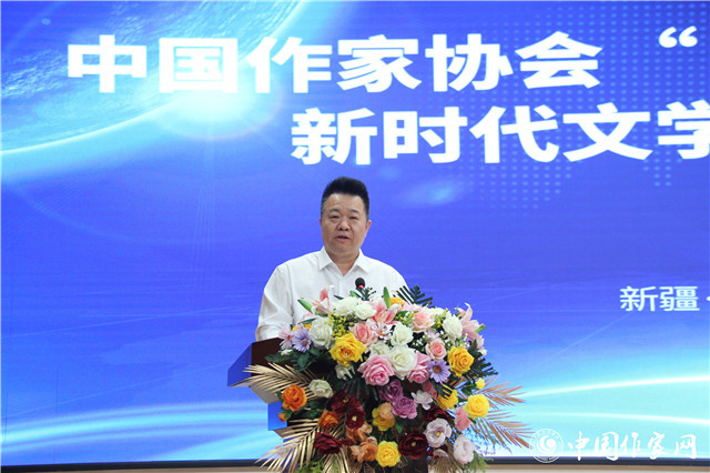 邱華棟在授牌儀式上講話。他表示,中國作家協會設立“深入生活、扎根人民”新時代文學實踐點,就是要進一步團結引領廣大作家與人民同行、與時代同步,堅持以人民為中心的創作導向,鼓勵廣大作家把“深入生活、扎根人民”作為長期自覺的行動,進一步推動“深入生活、扎根人民”新時代文學主題實踐常態化、長效化,推動新時代文學繁榮發展。同時,這次文學實踐點掛牌活動也是中國作協堅持以鑄牢中華民族共同體意識為主線,全力推進“文化潤疆”工程的重要舉措。