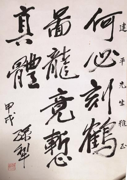 1995年春,我給孫犁先生寫了一封信,除了問候,還提出了不情之請,求他賜幅字。他收到信的第二天就回復:寄上拙字一幅,談不上書法,你留個紀念吧。字幅的內容是:何必刻鶴圖龍,竟慚真體。我一時找不到出處,對其中含義理解不透。后經編輯前輩、紅學家陳詔先生指點,方知此語出自唐代書法家孫過庭的《書譜》,意為學書法,何必一定要去刻意畫鶴描龍,使天然真體大為遜色。這和孫犁先生崇尚自然的心境相合,也是對我這個晚輩的勉勵。