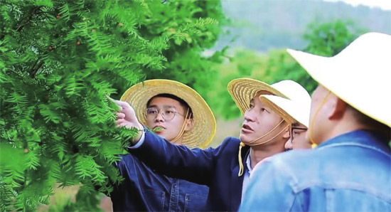 每次走進層層疊疊的紅豆杉林間,王仁子總有幾分感慨。他望著滿眼的翠綠,簇簇紅豆鑲嵌其間,回想扎根家鄉的這些年,幾度風雨,幾度春秋,從未言愁。
