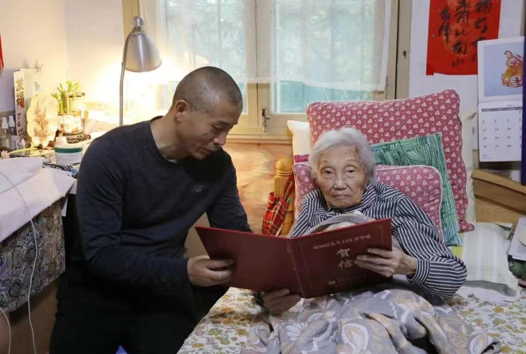 “我們前兩天就該來看你了。晚了幾天才來,我們很抱歉。”畢飛宇一進門就向楊苡遞送鮮花,解釋說前段時間汪興國書記參加中國作協在連云港舉辦的培訓班,因為疫情原因被封了一個禮拜,昨晚剛回南京,今天就立刻過來為她補過103歲生日。楊苡不在意地擺擺手,“那有什么關系,我從來不愛過生日。”