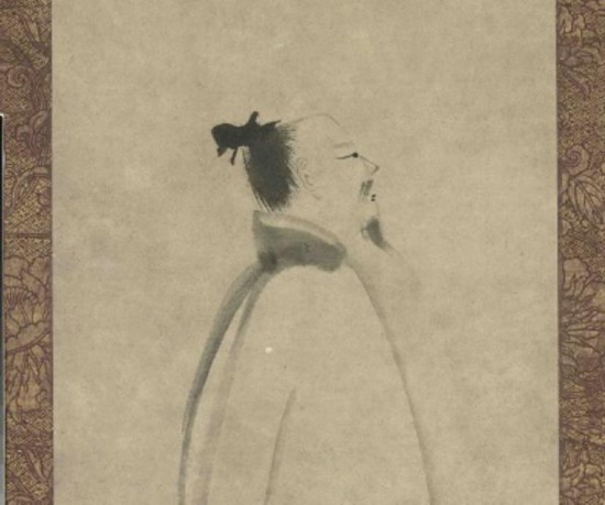 《李白行吟圖》是梁楷減筆人物畫的代表作品。畫中李白側身而立,仰面于天,詩情寄于胸懷,獨自縱思運句,所謂“月下獨酌”。初看似是用寥寥數筆畫成,但若細細品察,就可發現筆筆皆是精妙設計。頭部用細線輕巧刻畫,衣袍與頭部細線相映成趣,用線格外豐富,虛實結合,濃淡變化,抑揚頓挫,使得人物不再孤立于紙面,而是融于背景,巧妙地表現詩人李白在天地之間飄然獨立之態。未經雕琢的爽逸線條,展現出李白的瀟灑浪漫。