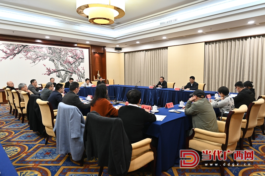 調研期間,張宏森與廣西作家代表座談。石才夫、馮藝、張燕玲、凡一平、朱山坡、紅日、李約熱、王勇英、我本純潔、黃其龍等15名作家分別介紹了自己的創作情況,并圍繞如何推動作協組織工作、如何實現文學的“破圈”、如何促進邊疆民族地區文學事業繁榮發展等進行交流。張宏森認真聽取大家的發言,與大家親切交談,不時詳細詢問相關情況,現場氛圍輕松熱烈。