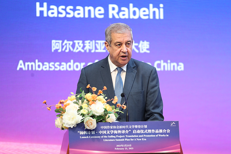哈桑·拉貝希表示,今年恰逢中國國家主席習近平提出“一帶一路”倡議十周年。這一寶貴的倡議旨在促進各國民心相通,促進和平、繁榮與合作。文學翻譯具有十分重要的意義,相信“揚帆計劃·中國文學海外譯介”的啟動將以一系列豐富多彩而優(yōu)秀的翻譯作品,加強各國人民之間的了解,帶來豐碩的合作成果和國際凝聚力。阿爾及利亞將繼續(xù)信任、鼓勵并對此提供相應的支持。作為今年北京國際圖書博覽會的主賓國,阿爾及利亞也將積極推動阿中合作,將更多的書籍和作品翻譯成中文,讓中國讀者更多地了解阿爾及利亞的文學和文化。
