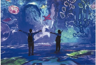 觀眾在安徽省美術館“馬克·夏加爾:物色之夢數字藝術展”參觀。