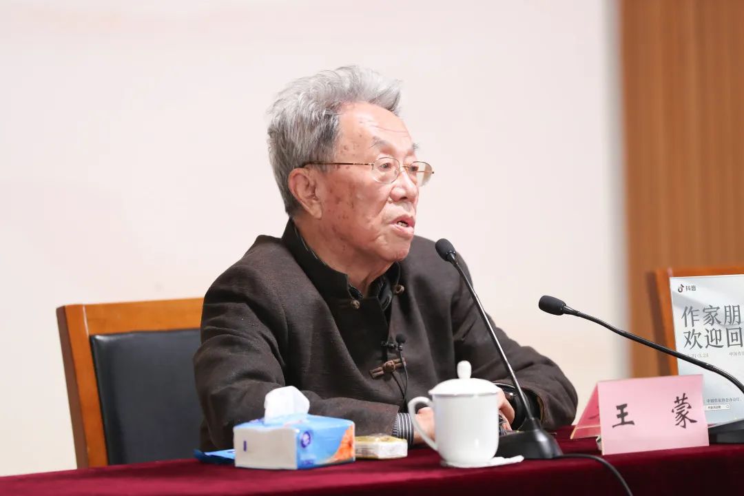 隨著一陣熱烈的掌聲響起,王蒙在主持人吳義勤的陪伴下走上了講臺。