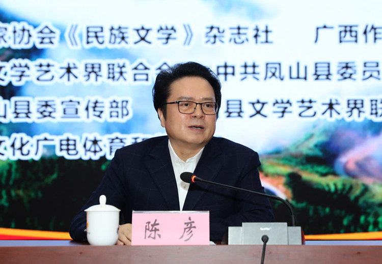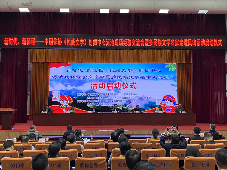 3月31日至4月3日,由《民族文學》雜志社、廣西作家協會、廣西河池市文聯,中共鳳山縣委、縣人民政府主辦的“新時代 新征程——《民族文學》創(chuàng)閱中心河池現場經驗交流會暨多民族文學名家走進鳳山”活動在廣西鳳山縣舉行。中國作協黨組成員、副主席、書記處書記陳彥,《民族文學》主編石一寧,廣西文聯主席、作協主席東西,中共河池市委常委、宣傳部長孔獻玲,河池市文聯黨組書記、主席潘紅日,《民族文學》副主編楊玉梅,中共鳳山縣委書記薛海源、縣人民政府縣長楊勝濤、縣人大常委會主任羅國照、縣政協主席韋海山,縣委副書記黎舉孟,以及牙韓彰、潘靈、石朝雄、興安、巴桑、韋秀觀、李卓瑪等多民族作家,《民族文學》創(chuàng)閱中心負責人及作家代表,河池市和鳳山縣作家代表、部分文學愛好者參加本次活動。