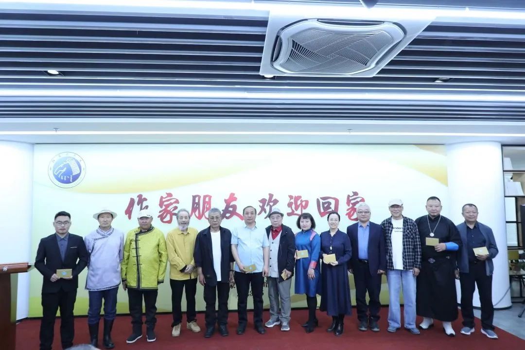 歡迎儀式上,內蒙古作家協會向首期“回家”的老會員代表頒發了“妙筆生花”紀念品。老會員代表向剛入會的新會員們頒發了會員證,共同完成了文脈傳承和文學接續。