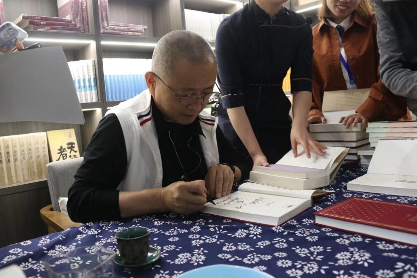 在劉醒龍作家書屋,湖北省文聯主席劉醒龍與文學愛好者親切互動,簽名、座談、合影,“文約清溪”活動現場氣氛熱烈。“我非常喜歡您寫的《抱著父親回故鄉》,文字觸動人心,讓我也萌發了寫寫父親的念頭。”“《鳳凰琴》我看過很多遍,升國旗用笛子來伴奏,這個畫面深深刻在了我的腦海里。”文學愛好者爭相與劉醒龍交流。劉醒龍微笑傾聽,不時與大家交流寫作心得,或耐心回答大家的問題。