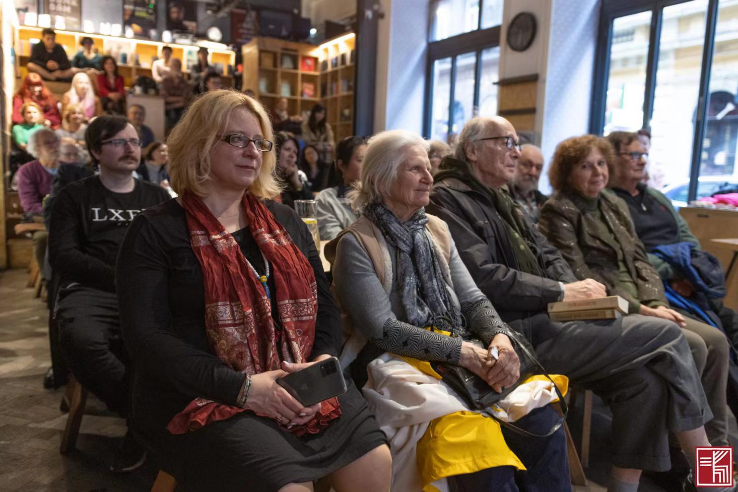 在這場豐富多彩、賓客滿堂的活動上,還播映了多個來自多位匈牙利作家、詩人、翻譯家、漢學家、出版人、外交官、藝術家的視頻寄語,其中有裴特爾斐·蓋爾蓋伊(Péterfy Gergely)、馬利亞什·貝拉(drMáriás)、科奇什·安德拉·山多爾(Kocsis András Sándor)、拉茨·彼得(Rácz Péter)、索卡奇·金戈(Szokács Kinga)、梅薩洛什·山多爾(Mészáros Sándor)、歐澤·久爾吉(Odze Gy?rgy)、卡爾瑪·伊娃(Kalmár éva,姑蘭)和施塔勒·艾絲特(Stáhl Eszter)等。有的人評價并推介了《紙魚缸》,有的人重溫了與作者、與中國相關的珍貴回憶。與此同時,活動視頻、圖片等均已通過讀者俱樂部的臉書賬號(Kortárs Kínai írók / Irodalom / K?nyvklub)和網站(https://www.kinaiirodalom.hu/5-konyvklub-yu-zemin-papirakvarium/),面向廣大匈牙利文學愛好者進行了發(fā)布。