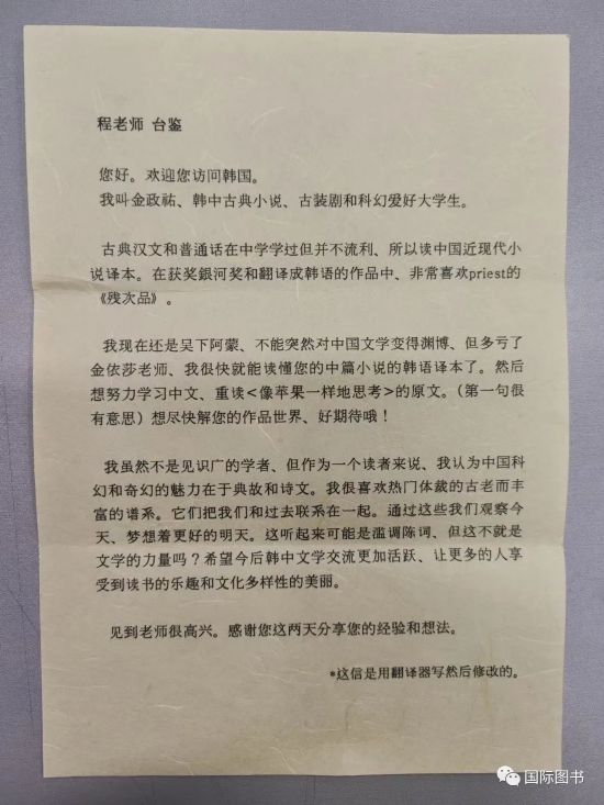 韓國(guó)讀者寫(xiě)給程婧波的信