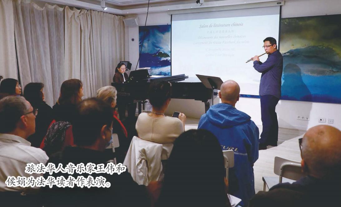 在活動(dòng)現(xiàn)場(chǎng),張若軍、埃勒維茲·列斐伏爾分別用中文和法語(yǔ)朗讀了唐代詩(shī)人白居易的《賦得古原草送別》,把法國(guó)讀者帶入經(jīng)典詩(shī)句“野火燒不盡,春風(fēng)吹又生”的意境。旅法華人音樂(lè)家王偉在鋼琴家侯娟伴奏下,吹奏了一曲長(zhǎng)笛經(jīng)典作品《威尼斯狂歡節(jié)》,并用古老的中國(guó)樂(lè)器“塤”吹奏了一曲自己創(chuàng)作的《時(shí)間之路》,受到熱烈歡迎。