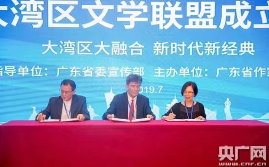 2019年7月,粵港澳大灣區文學聯盟成立,提出了“鼓勵不同流派、不同風格、不同觀念之間的切磋借鑒,激勵個性化創作和原創性探索”的倡議。(圖源:央廣網)
