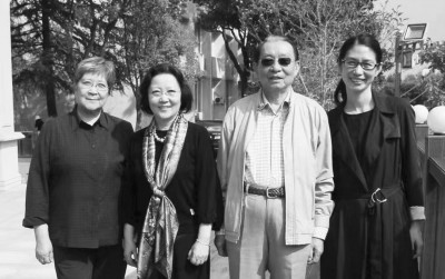 左起:三聯(lián)書店前總經(jīng)理董秀玉、傅敏夫人陳哲明、傅敏、本文作者王競(攝影:阿元)