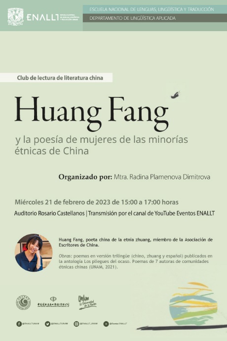 近期,由中國作家協(xié)會(huì)外聯(lián)部指導(dǎo),墨西哥“中國文學(xué)讀者俱樂部”、中國圖書進(jìn)出口(集團(tuán))有限公司與墨西哥國立自治大學(xué)共同舉辦的“共賞黃昏——《落霞重重》少數(shù)民族作家詩歌分享會(huì)” 在該校成功舉辦。壯族女作家、詩人黃芳,墨西哥國立自治大學(xué)語言、語言學(xué)和翻譯系主任瑪麗亞·德爾·卡門·孔蒂約赫·埃斯孔特里亞博士,中文系教授拉嫡娜,譯者蘇珊娜·鮑蒂斯塔以及墨西哥國立自治大學(xué)中文系師生出席了此次活動(dòng)。埃斯孔特里亞博士為本次活動(dòng)致辭,并對(duì)黃芳首次訪問學(xué)校表示熱烈歡迎。